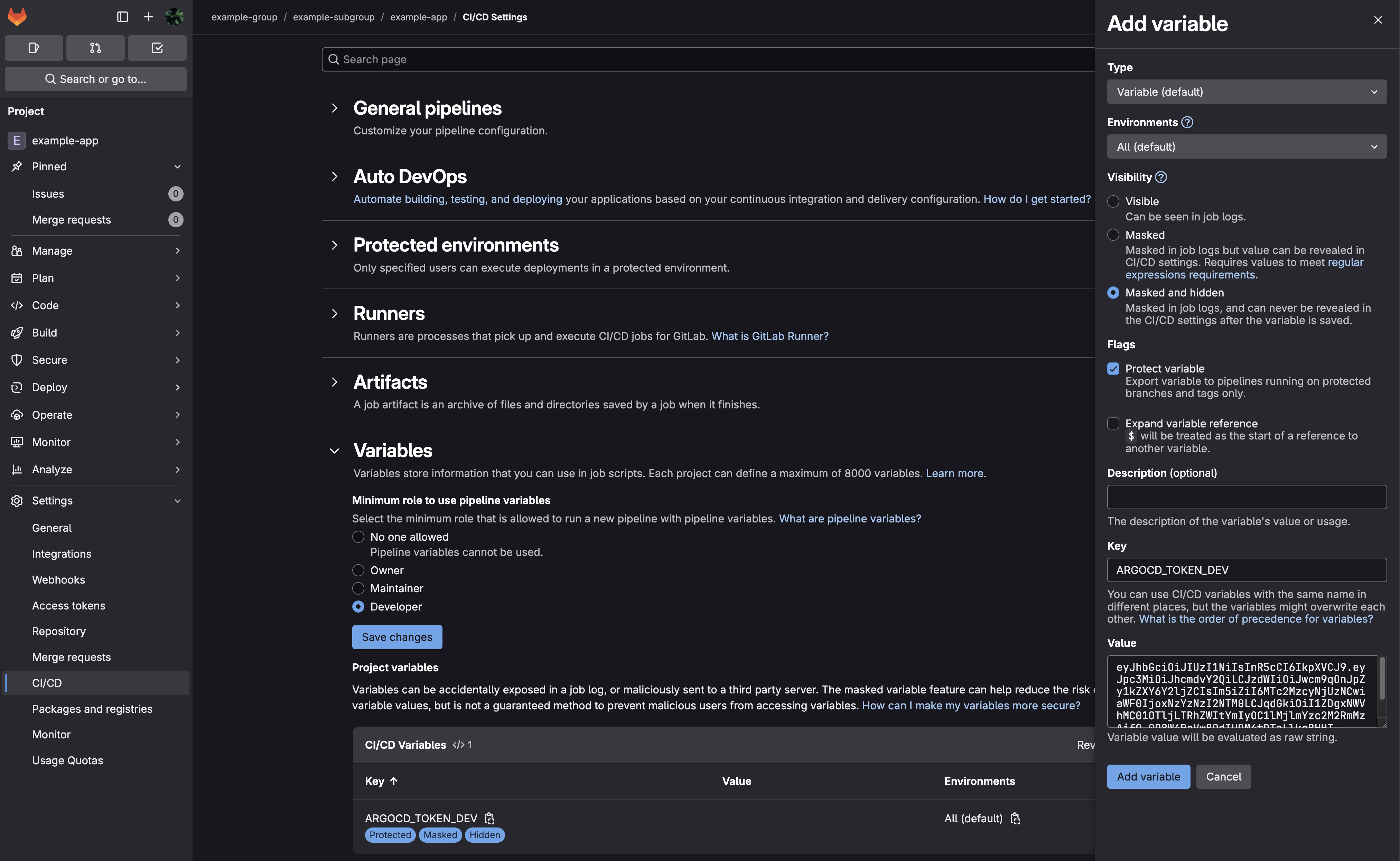This is an example of how to create a JWT token in ArgoCD and use it in GitLab CI to deploy applications in ArgoCD.